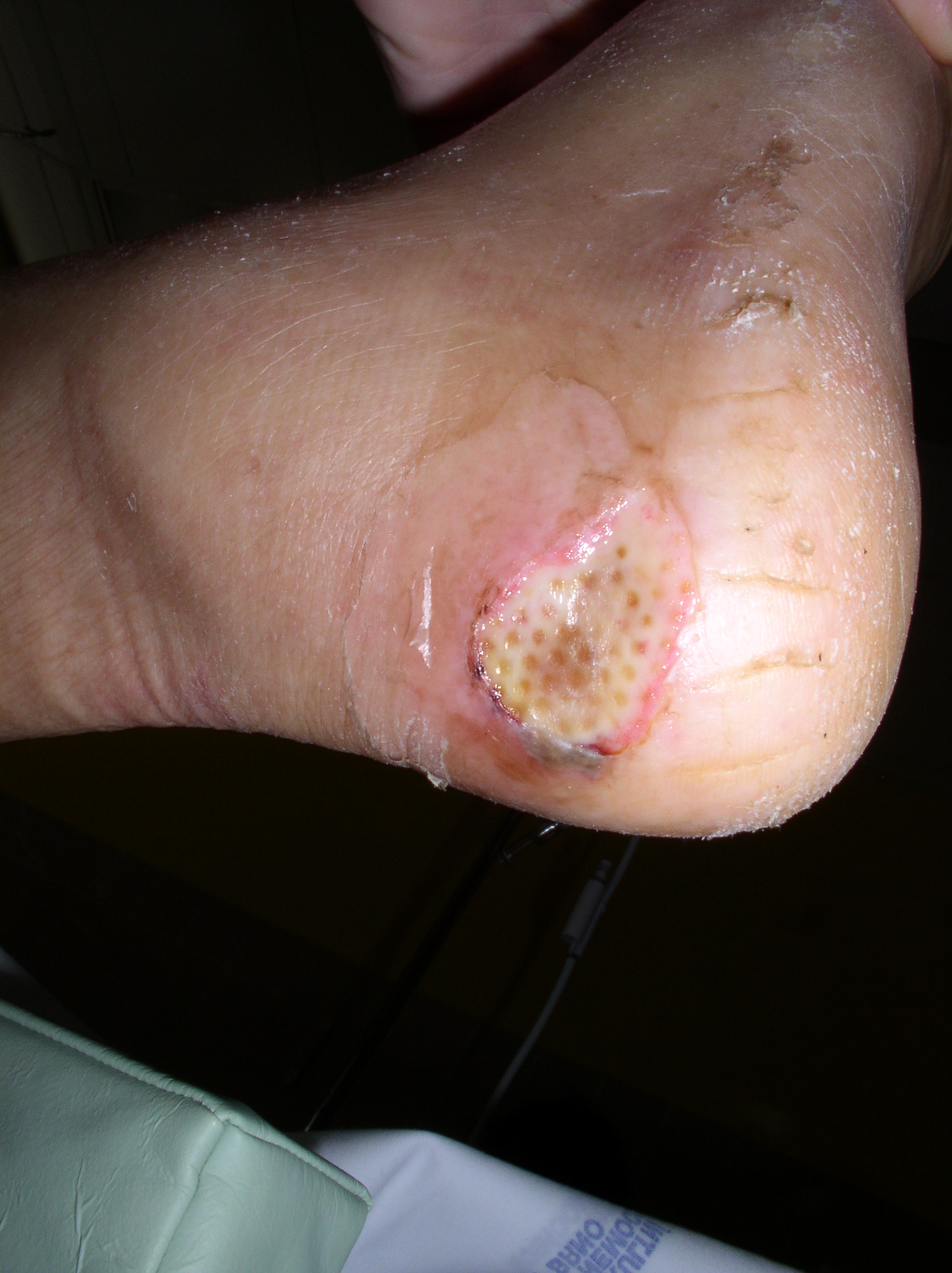 8. až 10. den hospitalizace: Pacient byl stále oběhově nestabilní, objevuje se u něj anasarka a krvácení ze sliznic a koutků DÚ, proto podáván Dicynone i. v. Nemocný stále napojen na UPV režim DuoPAP. Pacient je postupně subfebrilní až afebrilní. Nadále trvá léčba antibiotiky: Metronidazol, Prostaphlin, Ciphin i. v. Defekt na patě pravé nohy ošetřen Mepitel One, Normgel + sterilní krytí.