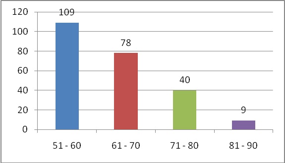 | 50-60 | 78 | 72 % | 31 | 28 % | 21 |