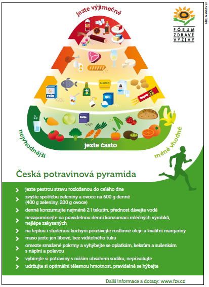 Česká potravinová pyramida Fóra zdravé výživy je včetně doprovodných textů k dispozici na webových stránkách www.fzv.cz.