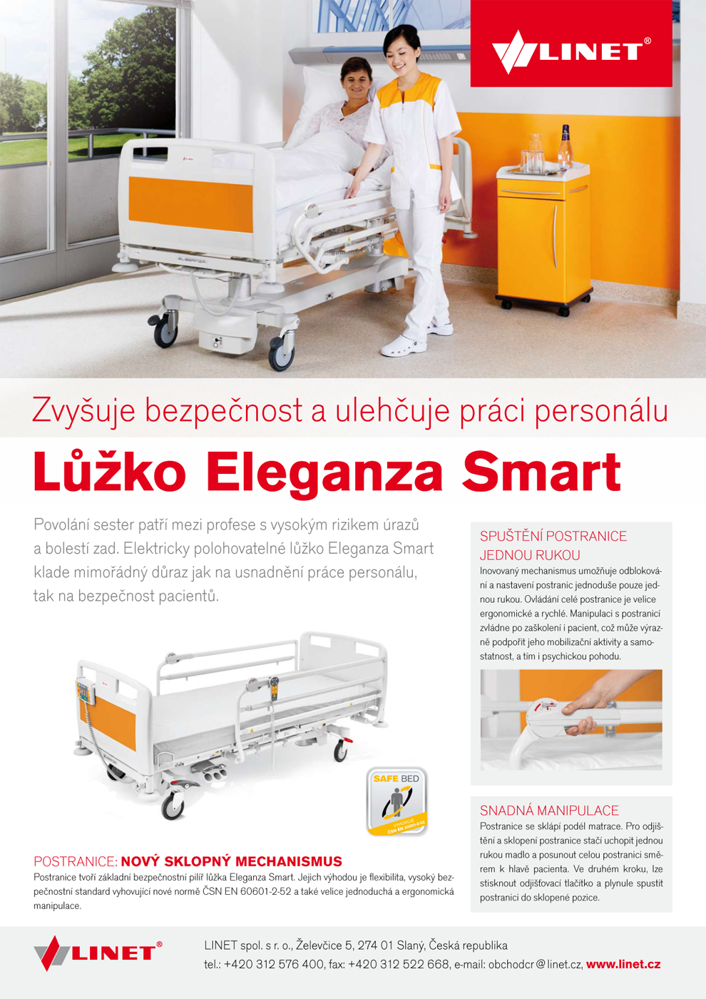 Povolání sester patrí mezi profese s vysokým rizikem úrazu a bolestí zad. Elektricky polohovatelné lužko Eleganza Smart klade mimorádný duraz jak na usnadnení práce personálu, tak na bezpecnost pacientu.
