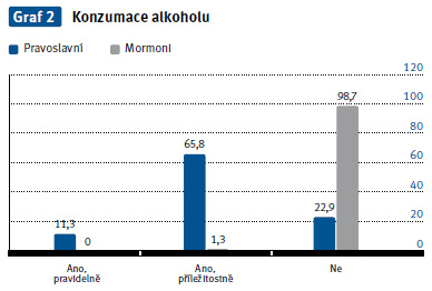 Členové pravoslavné církve nemají zvláštní stravovací návyky. Tradičně odmítají krev a jídlo s krví. Je zakázáno jíst potraviny, které byly obětovány jiným božstvům. V období půstu nemohou jíst maso. V konzumaci nápojů nemají členové církve žádné omezení, mohou pít kávu a alkohol. 65,8 % respondentů pi e alkohol příležitostně a 22,9 % nepije alkohol (graf 2). 21,9 % respondentů z pravoslavné církve uvedlo, že kouří (graf 3).