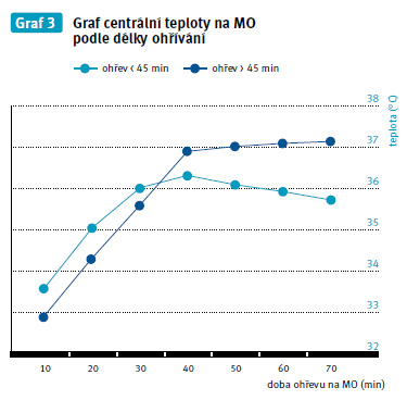 Z naměřených výsledků můžeme potvrdit, že pacienti ohřívaní do 45 minut v době MO opouštěli operační sál s průměrnou centrální teplotou 35,7 °C. Tato teplota může být zdrojem již výše zmíněných komplikací souvisejících s dosaženou nižší tělesnou teplotou.