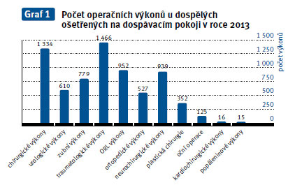 Na dospávacím pokoji je nepřetržitý provoz v návaznosti na poskytovanou anesteziologickou péči na centrálních operačních sálech. V roce 2013 byla poanestetická péče poskytnuta 10 066 pacientům. Skladba pacientů na dospávacích pokojích je různá. Vyjma dospělých pacientů pečujeme také o děti po operacích a diagnosticko-léčebných intervencích. Přehled pacientů v poanestetické péči na našem dospávacím pokoji za rok 2013 uvádějí grafy 1, 2, 3.