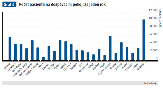 Kapacita lůžek na dospávacích pokojích v ČR se pohybuje od 4 lůžek např. v nemocnici Vyškov a Zlín až po 12 lůžek ve FN Olomouc. Nejvyšší počet lůžek – 15 je podle závěrů průzkumu ve FN Ostrava.