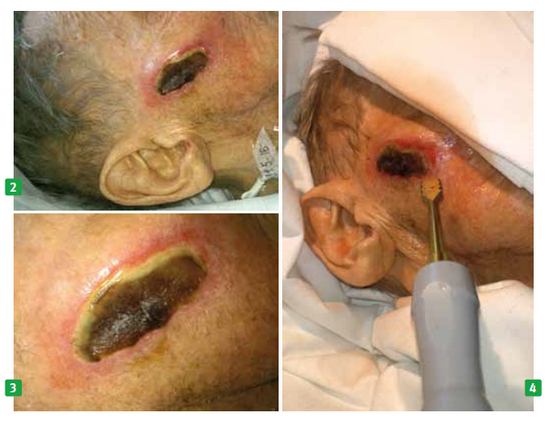 Přítomnost nekrotické tkáně je jedním ze základních markerů nehojící se rány. Pro úspěšný proces hojení je odstranění nekróz neboli nekrektomie nezbytnou nutností. V současné době existuje několik metod, které k odstranění avitální tkáně můžeme použít a vzájemně kombinovat. V našem příspěvku seznamujeme s débridementem pomocí ultrazvukového přístroje.