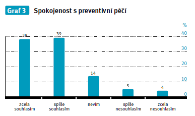 Další otázky výzkumného šetření ve vztahu přístupu ke zdraví u romské menšiny se zabývaly spokojeností s preventivní péčí v ČR. Úplnou spokojenost s preventivní péčí v ČR udává 35,69 % dotázaných Romů a 3,63 % nejsou spokojeni vůbec. Na preventivní prohlídky s dětmi chodí pravidelně 36,7 % dotazovaných respondentů, opět ale musíme zohlednit, že 49,12 % respondentů nemá děti, tudíž lze konstatovat, že preventivní péče u dětí je na dobré úrovni. Co se týká prevence a očkování, Romové se ve většině případů, tzn. v 49,74 %, nenechávají očkovat, ale především nechávají očkovat své děti, a to 62 % dotázaných, kteří mají děti.