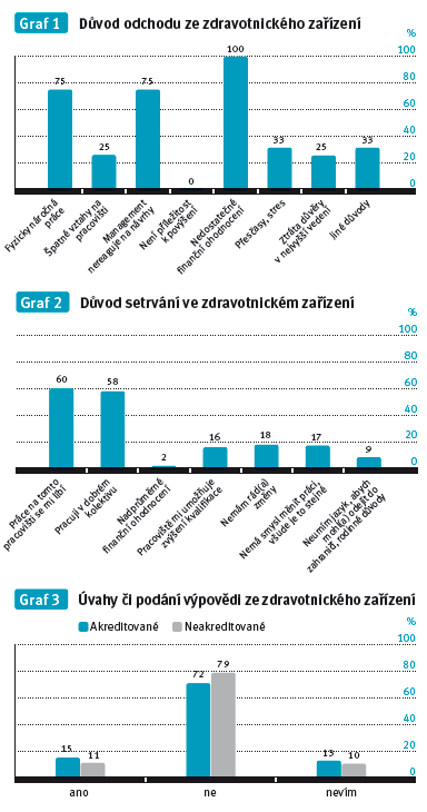 Z průzkumu a statistického výpočtu jednoznačně vyplývá, že získání akreditace nemá vliv na snížení fluktuace – viz graf č. 3. Akreditovaná nemocnice má jako jednu z povinností aktivně sledovat spokojenost zaměstnanců a také adekvátně reagovat na připomínky ze sledování vzešlé. Zůstává tedy otázkou, zda management toto sledování neprovozuje spíše jen jako formální záležitost pro získání akreditace, zda prostě neumí (nechce) adekvátně reagovat na připomínky vzešlé z tohoto průzkumu či zda nesprávně informuje zaměstnance o navržených opatřeních.