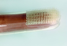 Od počátku prořezávání dočasných zubů (tj. mezi 6.–12. měsícem věku) by dítě mělo mít svůj vlastní zubní kartáček (obr. 1). Pokud je dítě ještě v noci kojeno, měli bychom jeho zuby i po nočním kojení před usnutím otřít vlhkou gázou, protože i po kojení zůstává na zubech povlak. Bakterie obsažené v tomto povlaku podporují demineralizaci tvrdých zubních tkání. Ve spojení s nižší produkcí slin v noci a horizontální polohou dítěte se pak kojení (zejména opakované noční kojení po jednom roce věku) stává jedním z faktorů vzniku kazu v časném dětství.