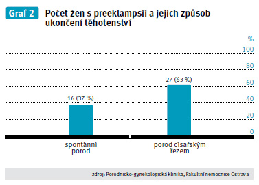 Klientka paní K. B. byla přijata k hospitalizaci na gynekologicko-porodnickou kliniku dne 15. 12. 2012 jako transfer in utero z nemocnice Havířov pro pravidelnou děložní činnost co 15 minut, pohyby plodu cítí, plodová voda neteče, nekrvácí. Při přijetí je hodnota krevního tlaku 160/90 mm Hg, bolest hlavy, nauzeu a poruchy zraku neguje. Kontrakce pravidelné co 15 minut, kardiotokografický záznam plodu je reaktivní, zúženě undulatorní, bazální frekvence 140 tepů/ /min., bez decelerací. Při ultrazvukovém vyšetření je zjištěna růstová retardace plodu. Klientka je uložena na intermediální jednotku porodního sálu. Z laboratorních výsledků byla zjištěna přítomnost bílkoviny v moči, snížení počtu trombocytů a zvýšené hodnoty jaterních enzymů. Vzhledem ke stáří gravidity je zahájena kortikoidní léčba k podpoře dozrání plic plodu, tokolytická terapie, ATB terapie (byla podána z preventivních důvodů – Amoksiklav 1,2 g i. v. co 8 hod.), jsou podána antihypertenziva Dopegyt 250 mg 3× 1 tbl., pro elevaci jaterních testů se podávají i hepatoprotektiva – Flavobion 80 mg 3× 1 tbl. a Essentiale Forte N 300 mg 3× 2 tbl. Klientka si je vědoma závažnosti svého stavu, rozumí a souhlasí s navrženou léčbou a postupy, chápe možná rizika onemocnění jak pro sebe, tak pro plod, je srozuměna s nutností ukončení těhotenství v případě neúčinné neúčinné medikamentózní léčby, při progresi onemocnění nebo při známkách zhoršení stavu plodu a zvýšené hodnoty jaterních enzymů.