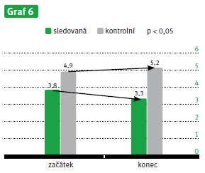 Sledovaná skupina (intervence NTDR Compact Protein) statisticky významně zlepšila svůj nutriční stav po dobu hospitalizace z nutričního skóre 3,8 při příjmu na 3,3 při propuštění. To znamená, že pacienti odcházeli v nutričně lepším stavu, než do nemocnice přišli.