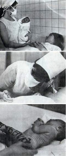 V 70. letech 20. století probíhal porod následovně: „První dobu porodní trávila rodička většinou v polosedě, při druhé době porodní byla rodičce doporučena poloha na boku (pro usnadnění šroubovitého pohybu hlavičky plodu při průchodu malou pánví).“ (Trča, 1971). V momentě, kdy byla hlavička miminka zahlédnutá v pochvě, přišel lékař; nástřih hráze mohl provádět pouze on s asistencí ženské sestry.