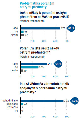 Jednak to vyplývá z nedostatku informací – i když vím, že neznalost zákona neomlouvá, rozumím tomu, že ne každá sestra na oddělení si bude číst evropskou směrnici nebo pročítat 23 našich zákonných předpisů, aby věděla, že to má nahlásit, a mnohdy je to právě tím, že si neuvědomují rizika. V našem průzkumu se ukázalo, že poranění se hlásí zpravidla tehdy, když zdravotničtí pracovníci nevědí, od koho byl použitý materiál, nebo když předpokládají, že pacient mohl být infekční. Ale pokud si myslí, že je pacient v podstatě zdravý, tak tu potřebu nemají. Dozvěděli jsme se také, že mají strach z toho, že je vedení zdravotnického zařízení potrestá nebo že se jim budou kolegyně/kolegové smát. Byly to někdy zvláštní odpovědi, které jsme se dozvěděli.