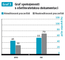 Z našeho výzkumu na akreditovaném pracovišti je s ošetřovatelskou dokumentací spokojeno 45 % respondentek a na neakreditovaném pracovišti je spokojených pouze 30 % respondentek (obr. 3).