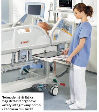 Nejmodernější lůžka mají držák rentgenové kazety integrovaný přímo v zádovém dílu lůžka. To umožňuje bezpečné snímkování hrudníku bez nutnosti s pacientem na lůžku jakkoliv manipulovat. Držák je opatřen systémem lokalizace kazety pro přesné umístění pod pacientem.