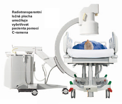 Radiotransparentní ložná plocha umožňuje vyšetřovat pacienta také pomocí C-ramena od oblasti pánve k hlavě. Díky tomu můžeme provést například některé invazivní kardiologické výkony a kontrolní vyšetření přímo na lůžku.