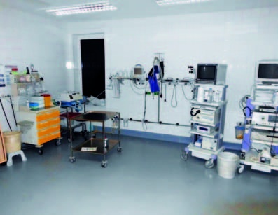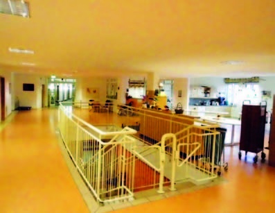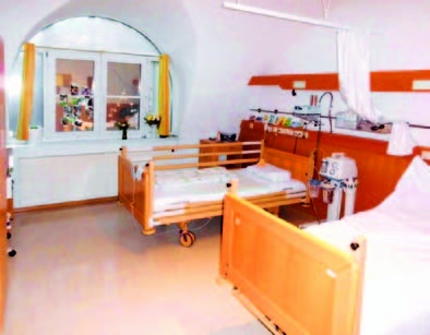 Klinika na nás působila ohromujícím dojmem. Komplex v sobě zahrnuje hned několik klinik a patří mezi ně i dětská klinika. Tam jsme chodili jen na exkurze, ale i tak jsme měli možnost nahlédnout na chod oddělení a seznámit se s dokumentací, množstvím terapií apod. Kapacita všech lůžek, která se nacházejí v hlavním komplexu kliniky Bavaria, činí kolem 1000 lůžek a pracuje tu více než 1800 zaměstnanců z různých koutů země. Klinika, kde jsme působili, disponovala vlastním RTG a CT zařízením i endoskopickým sálkem (obr. 2). Výrobci ortopedických pomůcek a vložek se nacházejí přímo v areálu. Dále tu je kavárna, minimarket, butik, holičství, pedikérka, bazény a koupaliště (po dohodě s nadřízenými sem smějí chodit i zaměstnanci).