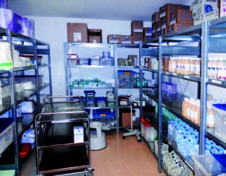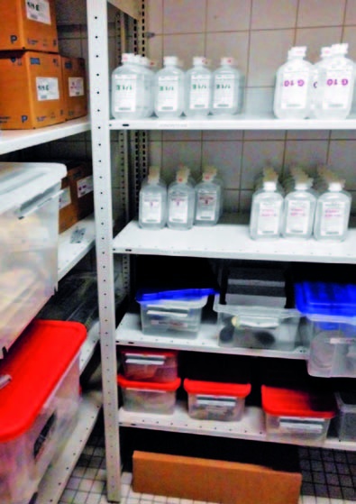 Oddělení byla dále vybavena dezinfekčními místnostmi, sklady s čistým prádlem a byly tu i sklady s různými věcmi jako např. NGS, sběrné sáčky na moč, močové katetry, nutriční nápoje aj. (obr. 10).