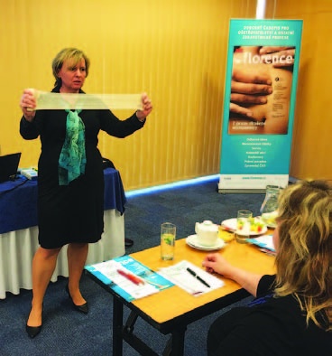 Účastníky přivítala šéfredaktorka časopisu Florence Magda Hettnerová a popřála jim, aby si ze semináře odnesli spoustu nových a pro praxi užitečných informací a aby se jim vzdělávací akce líbila. Pak předala slovo lektorce Bc. Janě Dvořákové, která posluchače celou problematikou hojení ran provázela.