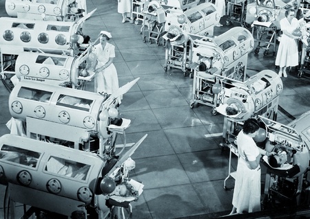 Vývoj obou hlavních směrů umělé plicní ventilace, pozitivním přetlakem i zevním negativním tlakem, probíhal paralelně do poloviny 20. století. V tomto období dominovaly techniky ventilace negativním tlakem, které se historicky upřednostnily před ventilací pozitivním přetlakem. To proto, že nebyla možnost, jak zajistit dýchací cesty, a našim předkům se ventilace negativním tlakem zdála býti více fyziologická. V běžném dechovém cyklu je totiž nádech umožněn díky negativnímu tlaku v pohrudniční dutině. Proto bylo pro naše předky logičtější vytvářet tento negativní tlak tím, že pacienta zavřeli do podtlakových komor, kde podtlak vyvíjel na hrudník takové síly, které vedly k nádechu. Tyto „železné plíce“ umožnily přežít mnoha mladým lidem postiženým poliomyelitidou. Metoda byla velmi rozšířená při vlně epidemií tohoto onemocnění.