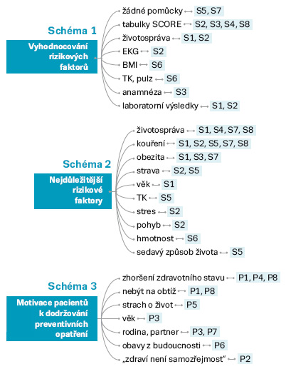 Všechny dotázané sestry používají při edukaci svých pacientů letáčky či brožurky, mimo ně ještě polovina sester dále uvádí jako prostředek edukace rozhovor, sestry tedy využívají písemnou i mluvenou metodu edukace. Většina, šest sester z osmi, edukuje pacienty komplexně. Sestry se tedy zaobírají všemi rizikovými faktory pacientů. Na schématu 2 lze vidět, které rizikové faktory jsou dle sester nejdůležitější.