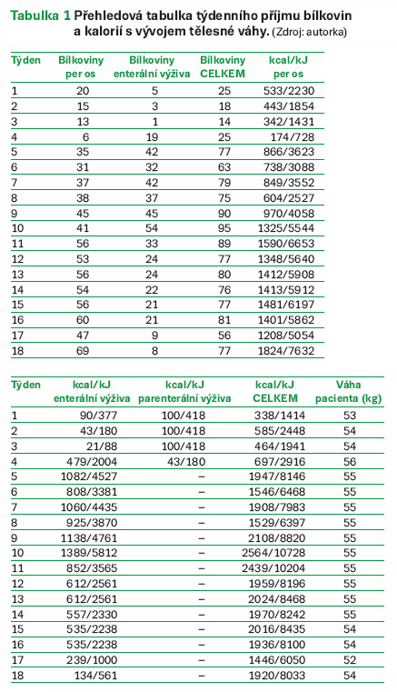 Pacient začal přijímat větší porce stravy. Laboratorní hodnoty se jevily velmi dobré, albumin činil 39 g/l. Proto se snížily dávky enterální výživy do PEG a navýšil se per os příjem. Jídelní lístky byly dopředu propočítávány na doporučenou denní potřebu pacienta a následně vyhodnocovány.