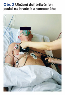 Nemocný je napojen na defibrilátor pomocí EKG svodu (synchronizace kmitu R). Na defibrilátoru zvolíme nejlepší EKG svod s nejvyšším kmitem R. Anesteziolog seznámí nemocného s průběhem krátkodobé anestezie a vyplní s ním dotazník, který je součástí informovaného souhlasu, který nemocný také podepíše. Před podáním anestezie je nutná preoxygenace (nasycení tkání kyslíkem), proto nemocnému podáváme kyslík kyslíkovou maskou. Sestra připraví medikaci – anestetikum (nejčastěji Propofol 1%) dle doporučení anesteziologa, který sám podává lék do žilní linky. Defibrilační pádla jsou potřena gelem. Jedna defibrilační elektroda (označená sternum) je umístěna vpravo v 2. mezižebří od hrudní kosti, druhou defibrilační elektrodu (označenou apex) přikládáme na 4.–5. mezižebří ve střední axilární čáře (obr. 2). Po podání analgosedace provádí kardiolog synchronizovanou verzi. Je-li potřeba, výboj se opakuje. Záznam o podaném výboji máme přímo z externího defibrilátoru (obr. 3).