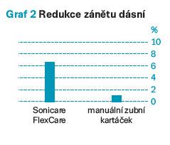 Ve srovnání s manuálním zubním kartáčkem byly během čtyřtýdenního používání zubního kartáčku Sonicare FlexCare signifikantně zredukovány mezizubní plak, zánět dásní a hloubka parodontálních chobotů u pacientů s lehkou, mírnou a těžkou parodontitidou.