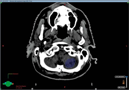 Obr. 8, 9 – Fúze snímků plánovacího CT a MR vyšetření