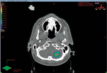 Jednorázové ozáření vysokou dávkou (obvykle v rozpětí 18-24 Gy a více) plánujeme s ohledem na velikost ozařovaného objemu a charakter ložiska.
