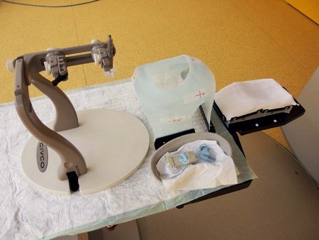 Obr. 12 – Individuální fixační pomůcky a neinvazivní stereotaktický rám