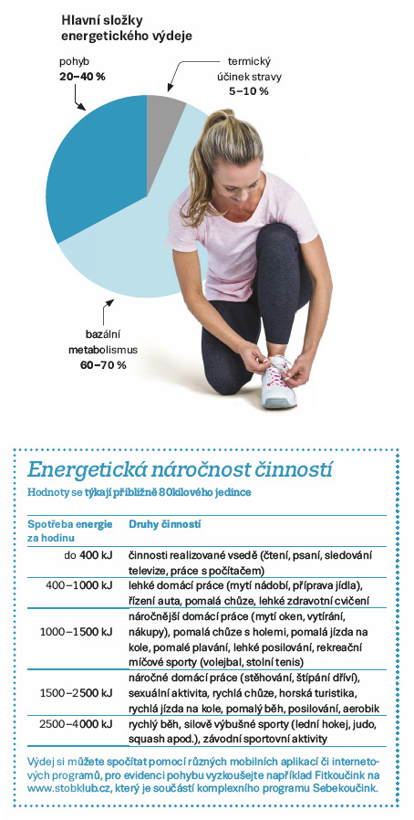 V předchozích dílech našeho seriálu jsme se věnovali tématům z oblasti výživy – především příjmu rizikových živin. Základní živiny (bílkoviny, tuky, sacharidy) společně s několika dalšími (například alkohol nebo některé druhy vlákniny) představují pro naše tělo energetický příjem. Rovnice má však vždy dvě strany, a proto je potřeba věnovat pozornost i energetickému výdeji.