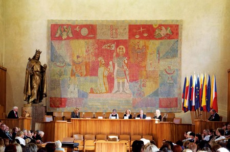 Ohlédnutí do minulosti bylo tématem sdělení dalšího řečníka, prorektora UK pro tvůrčí a ediční činnost prof. PhDr. Ing. J. Royta, Ph.D., který hovořil o historii ošetřovatelství na českém území od dob Přemyslovců. Zmínil jména jako svatá Anežka Česká, svatá Hedvika Slezská či Zdislava z Lemberka a zastavil se i u vzniku prvních špitálů. „Špitály byly zřizovány mimo hranice měst. Léčili se v nich například křižáci, kteří se vraceli z křižáckých tažení a kteří měli nejrůznější nemoci včetně lepry. Jejich ošetřování vyžadovalo velikou oběť. Je patrné, že ošetřovatelská práce byla vždy nebezpečná, obětavá, ale také velice náročná a těžká,“ upozornil. Zabrousil i do historie vzniku Karlovy univerzity a významu pelikána krmícího svá mláďata, kterého má lékařská fakulta ve znaku. Své sdělení pak zakončil poselstvím, že studium ošetřovatelství je nedílnou součástí studia na UK a že se univerzita bude snažit, aby tomu tak bylo i do budoucna.