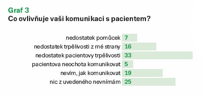 Při potížích v komunikaci reaguje téměř 42 % pacientů „netrpělivě, podrážděně“. V takovýchto případech vyžaduje pacient v 14,9 % případů přítomnost sestry.