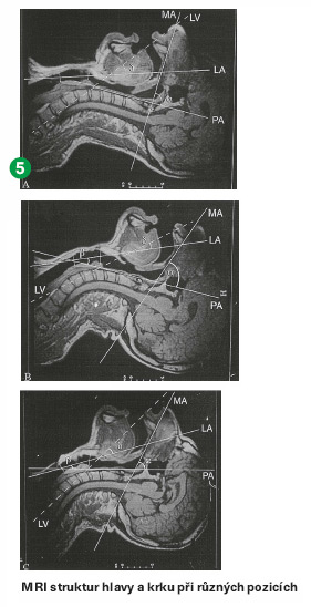 Vysoký BMI je jedním ze zásadních a nezávislých prediktorů obtížné ventilace maskou. Při aplikaci základních manévrů k uvolnění dýchacích cest u obézního nemocného narážíme na problém, že v případě prostého záklonu hlavy nemusíme vždy dosáhnout uvolnění dýchacích cest, a tím obnovy spontánního dýchání (obr. 3). K tomu dochází zřejmě z důvodu zmnožené tukové tkáně v oblasti horních cest dýchacích. Proto je nutné minimálně užití nosního nebo ústního vzduchovodu tak, aby k zprůchodnění DC došlo. Z literatury vyplývá, že lepších intubačních a ventilačních podmínek lze dosáhnout při správném polohování pacienta.