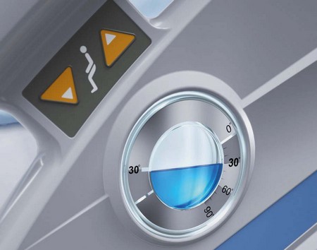 Eleganza 2 má totiž v postranicích atraktivní designové tekutinové úhloměry, které velmi přesně a přehledně indikují náklon ložné plochy a zádového dílu (obr. 2). „Ideální poloha je v bezpečném úhlu 30 stupňů a právě na tento úhel je zádový díl lůžka Eleganza 2 nastaven, aby se v něm při polohování automaticky zastavil,“ vysvětluje Zdena Sluková. Polohování se přitom děje pouhým stiskem tlačítka, což je pro sestry opět obrovská pomoc.
