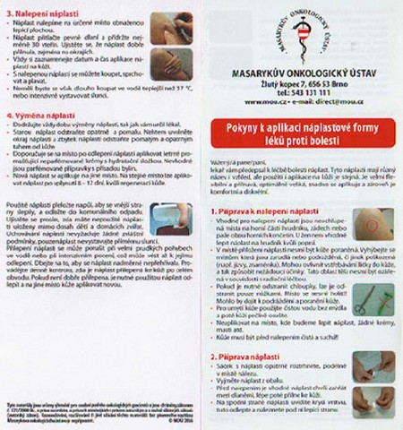 2. Směrnice MOÚ č. 19/2012. „Péče o pacienty s bolestí v Masarykově onkologickém ústavu“. Zpracoval MUDr. Ondřej Sláma, Ph.D.