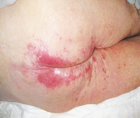 Správná identifi kace IAD a její odlišení od dekubitů (kategorie/stadium I nebo II) a jiných kožních potíží (kontaktní dermatitidy způsobené např. textilem nebo koženými výrobky), lézí způsobených infekcí (např. herpes simplex) nebo pocením (např. intertrigo) mohou být značně obtížné. Vždy platí, že pokud pacient není inkontinentní, nejedná se o IAD.