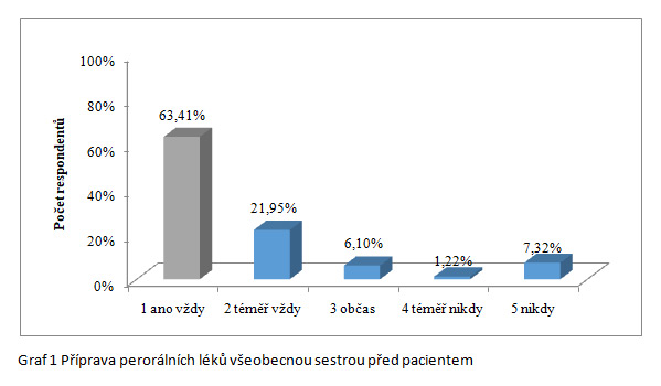 Stává se však, že v některých případech poskytované ošetřovatelské péče může dojít k chybnému postupu. Pouze u 52 (63,4 %) respondentů bylo zjištěno, že před nimi všeobecná sestra vždy připravuje perorální léky. Lze tedy tvrdit, že zdravotničtí pracovníci by se měli více zaměřit na tuto oblast, protože se jedná o jeden z nejzákladnějších postupů pro