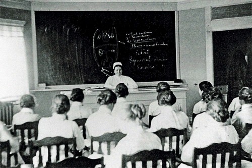 První právní regulace ve sjednoceném vzdělávání sester se datuje do roku 1934. Sjednocení bylo nutné. Pojem „sestra“ byl totiž na přelomu století dosti široký, zahrnoval nekvalifikované pečovatelky, dobrovolnice z Červeného kříže, Stuekoner i školené zdravotnice. Studium bylo stanoveno na tři roky, ve výuce se střídali lékaři a sestry. Obsahovalo např. úvod do anatomie, fyziologie, chemie a fyziky, bakteriologie a hygieny, ošetřovatelských postupů, historie a etiky, případně i matematiku, dánštinu a psaní (obr. 5). Závěrečné zkoušky pak kombinovaly teorii a praxi (Petersen, 1940).