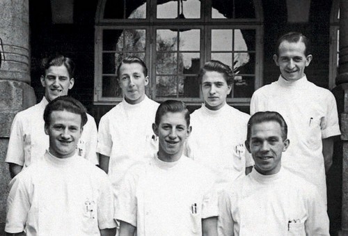 Za velkého zájmu veřejnosti bylo do vzdělávání zařazeno také sedm mužů (obr. 6). Stalo se tak v Královské nemocnici v Kodani v letech 1951–1954. Jednalo se o experiment reverenda Jensena. Reverend musel řešit otázky typu, jaké mají mít uniformy, zda je přípustné vyučovat ve smíšené třídě nebo kde budou bydlet. Tito muži se učili kromě základů ošetřovatelství také vaření, úklidu apod. Po ukončení studia museli déle čekat na státní oprávnění k výkonu povolání, ale nakonec jim bylo uděleno. V této době už byli muži-sestry také v Anglii, USA, Norsku (Jensen, 2001).