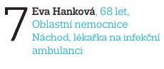 Chtěla bych je pozdravit a poděkovat, že čtou tento skvělý časopis. A ráda bych jim vzkázala: dodržujte všechna opatření, která vláda v této době nařizuje. Je to velmi důležité jak pro vás a vaše blízké, tak i pro nás zdravotníky, abychom současnou krizi společně překonali. Věřím, že ji překonáme velmi brzy.