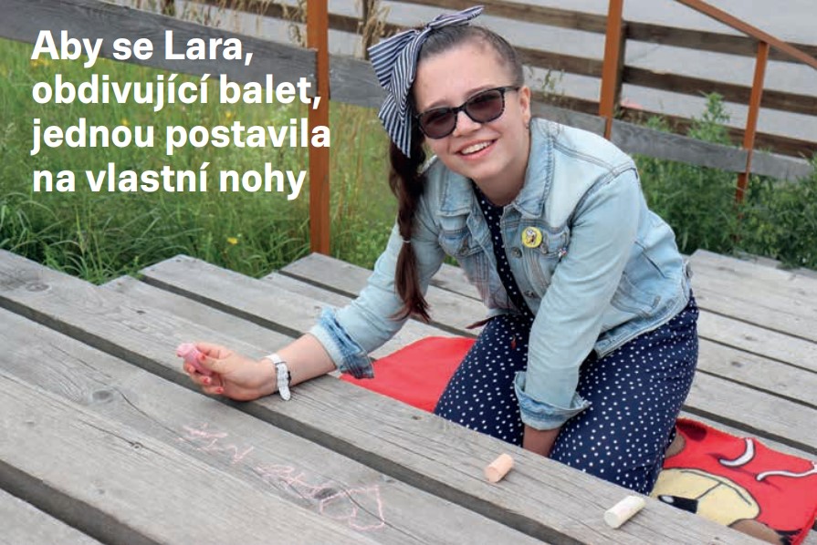 Kdyby se porod holčičky, které rodiče vybrali u nás netradiční jméno Lara, nezkomplikoval, všechno by dnes bylo jinak. Lara by už nejspíše chodila nějaký ten rok do baletní přípravky a nebyla by jen divačkou. Jenže žádná „kdyby“ v životě neexistují. Bezproblémové, pohodové těhotenství maminky Michaely vyvrcholilo neplánovaně dramatem, při kterém se Lara přidusila. „Lékaři museli moji holčičku křísit a pak několik dní strávila na dětské JIP. Když jsem si ji konečně přinesla domů, doufala jsem, že Laruščin zoufale špatný start v tomto světě nebude mít následky. Bohužel mé přání nebylo vyslyšeno,“ začíná maminka Michaela vyprávění o své dnes 11leté dcerce. Během následujících měsíců přišla zdrcující diagnóza: dětská mozková obrna, spastická diparéza, která způsobuje ztrátu rovnováhy.