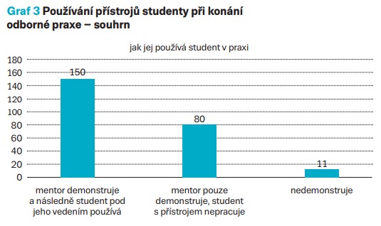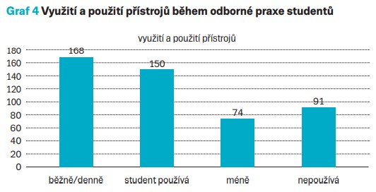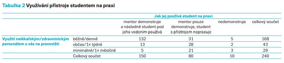 → využití přístroje „běžně/denně“, následně nejčastěji „mentor demonstruje a následně student pod jeho vedením používá“;