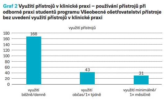 Dále bylo zjištěno, že četnost využití přístroje na pracovišti nebo ambulanci nemá vliv na to, jak je přístroj používán studentem na praxi – jedná se sice o přístroj denního použití, ale mentor pouze demonstruje a student s ním nepracuje. Zde může být mnoho důvodů, jako je to, že přístroj vyžaduje větší zaškolení, není mnoho možností, kdy přístroj použít, nebo není možné přístroj samostatně používat z důvodu kompetencí. Ewertsson et al. (2015) podotýkají, že odpovědnost pedagogů podílejících se na výuce sester v oblasti osvojení dovedností souvisejících s používáním zdravotnických prostředků je bezesporu velká, stejně tak jako kompetentních osob u poskytovatelů zdravotní péče, které zajišťují periodická školení v oblasti používání zdravotnických přístrojů. V kontextu uvedeného je zřejmé, že základní znalosti a dovednosti ve využívání zdravotnických přístrojů a dále periodické školení nejen absolventů je nutné pro zachování bezpečnosti pacientů.