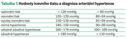 Podle výšky tlaku rozlišujeme hypertenzi mírnou, středně závažnou a závažnou (tab. 1).