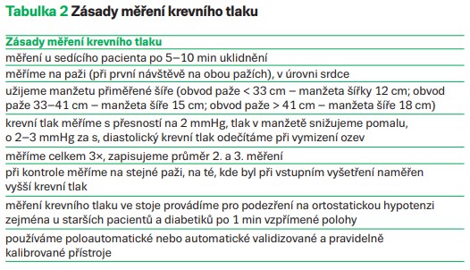 Zásady při měření krevního tlaku shrnuje tabulka 2.
