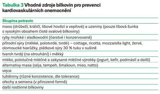 → navyšovat příjem zdrojů živočišných bílkovin s nízkým obsahem tuku a zdrojů rostlinných bílkovin (tab. 3);