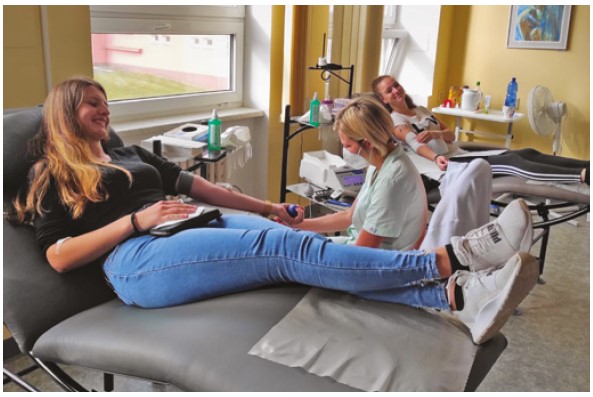 V roce 2019 měla kolegyně, odborná učitelka a dárkyně krve Mgr. Eliška Zemanová, nápad, že bychom mohly vytvořit projekt, kterým přivedeme na Transfuzní oddělení Fakultní nemocnice v Plzni nové dárce. Projekt jsme nazvaly Zdravík dárcem krve, přičemž Zdravík je maskotem naší školy SZŠ a VOŠZ Plzeň. V 1. ročníku projektu se nám přihlásilo 20 žáků a my byly rády, že se tito žáci zúčastní. V roce 2020 nám 2. ročník projektu překazila pandemie covidu-19, a tak jsme hned na začátku letošního školního roku, dokud byla epidemická situace dobrá, oslovily žáky 4. ročníků, kteří jsou již zletilí, aby darovali krev. Během pár dnů se nám přihlásilo 45 žáků napříč všemi obory, nejen praktické sestry, ale i žáci oboru masér a studenti Zdravotnického lycea. Musely jsme domluvit dva termíny odběrů, abychom nezahltili personál transfuzního oddělení. Bohužel mezitím vypukla vlna viróz a nachlazení, proto nakonec darovalo krev 35 žáků a jedna paní učitelka – každý 500 ml krve.