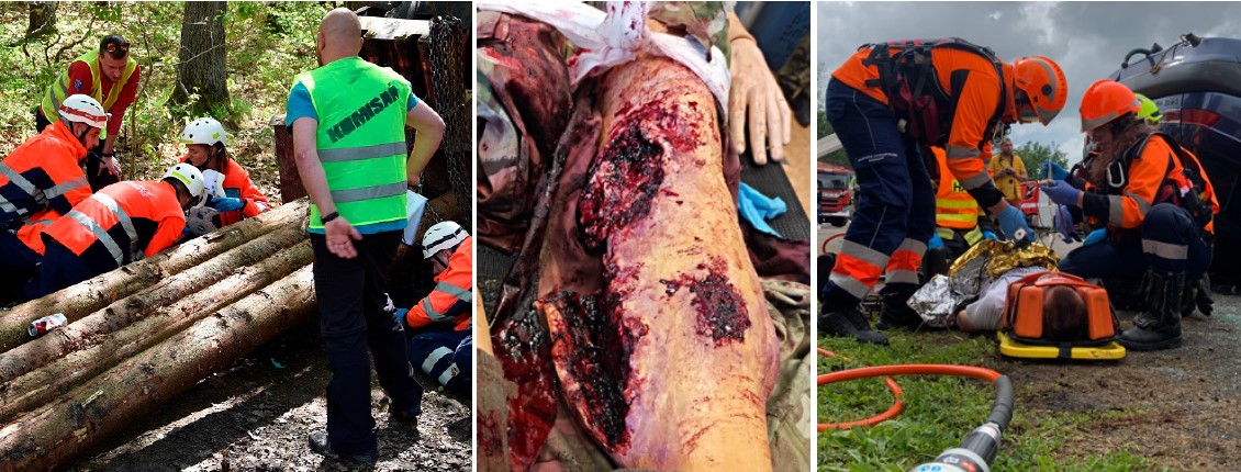 Aktuální zapojení našich maskérů je na kurzech „Extended Combat Medical Skills“, kdy ve spolupráci s lékaři Ústřední vojenské nemocnice připravujeme reálné události z bojových misí pro vojenské zdravotníky a záchranáře.