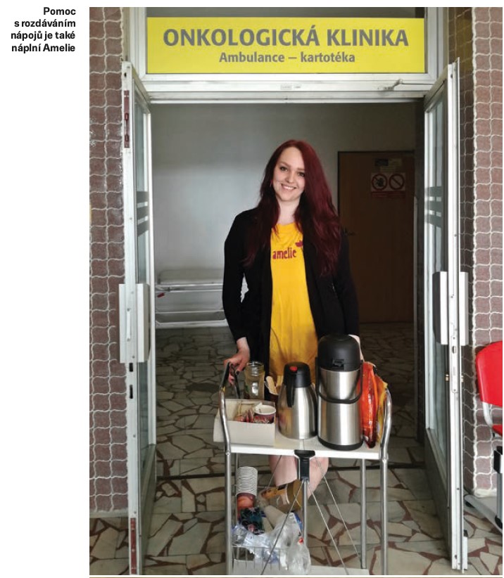 Amelie dále realizuje akreditovaný dobrovolnický program na onkologických odděleních, a to ve Všeobecné fakultní nemocnici v Praze, ve Fakultní nemocnici Bulovka, v Ústavu hematologie a krevní transfuze Praha, v Nemocnici Na Pleši, ve Fakultní nemocnici Olomouc a ve Fakultní nemocnici Hradec Králové. Nově se připravuje spolupráce s onkologickou klinikou v Krajské nemocnici Liberec. Dobrovolníci dochází k lůžkům pacientů a tráví s nimi čas nebo pomáhají rozptýlit a občerstvit čekající v ambulancích onkologických pracovišť. Jejich hlavními činnostmi jsou rozhovory, čtení, předání informačního letáčku, rozdávání časopisů, křížovek a antistresových omalovánek, drobné společenské hry, tvořivé aktivity nebo podání nápoje.